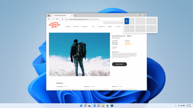 윈도11은 반투명과 그림자를 많이 사용하는 새로운 사용자 인터페이스(UI)를 채택하며 윈도10과 디자인적으로 차이를 줬다. 출시되지 못한 듀얼 스크린용 OS 윈도10X와 많이 닮았다.