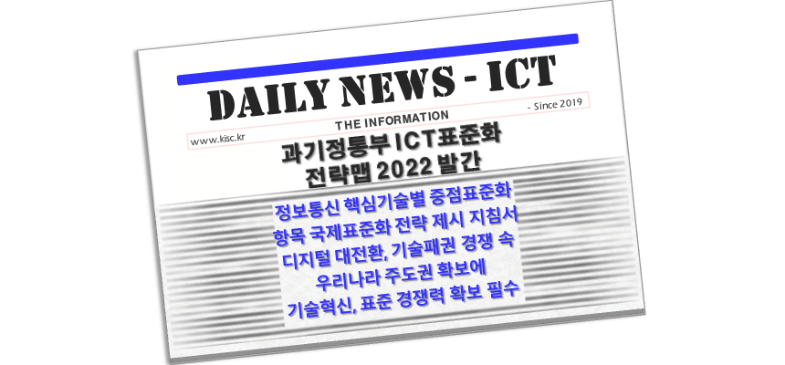 과학기술정보통신부는 정보통신기술(ICT) 국제표준화 경쟁력 확보를 위한 ICT 표준화전략맵 2022를 발간한다. 표준화 전략맵은 정보통신 핵심기술별 중점표준화 항목에 대한 국제표준화 전략을