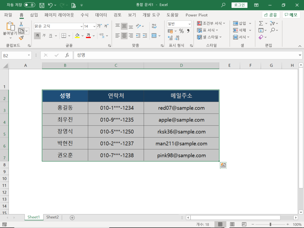 5. 다음과 같이 원본의 열 너비가 그대로 유지된 채 붙여넣기가 수행됩니다.