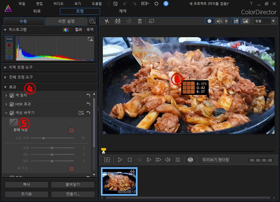 6. 색을 변경하고자 하는 동영상 영역을 마우스 클릭합니다.