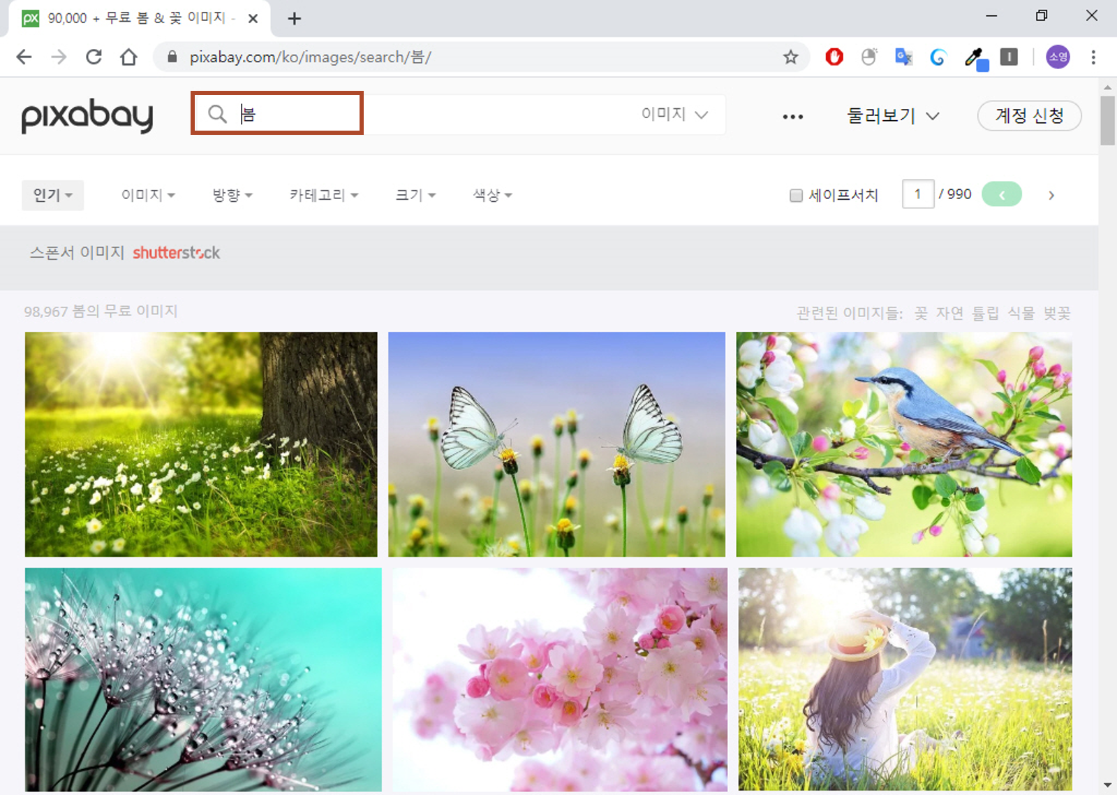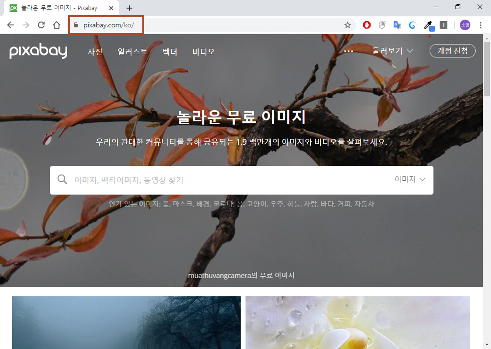1. 픽사베이 사이트(https://pixabay.com/ko/)에 접속합니다.