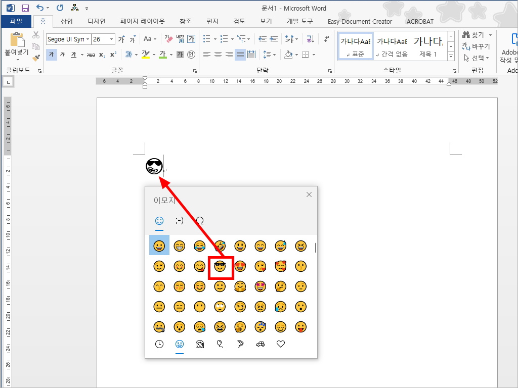[이모지] 패널에서 마음에 드는 이모지를 클릭합니다.