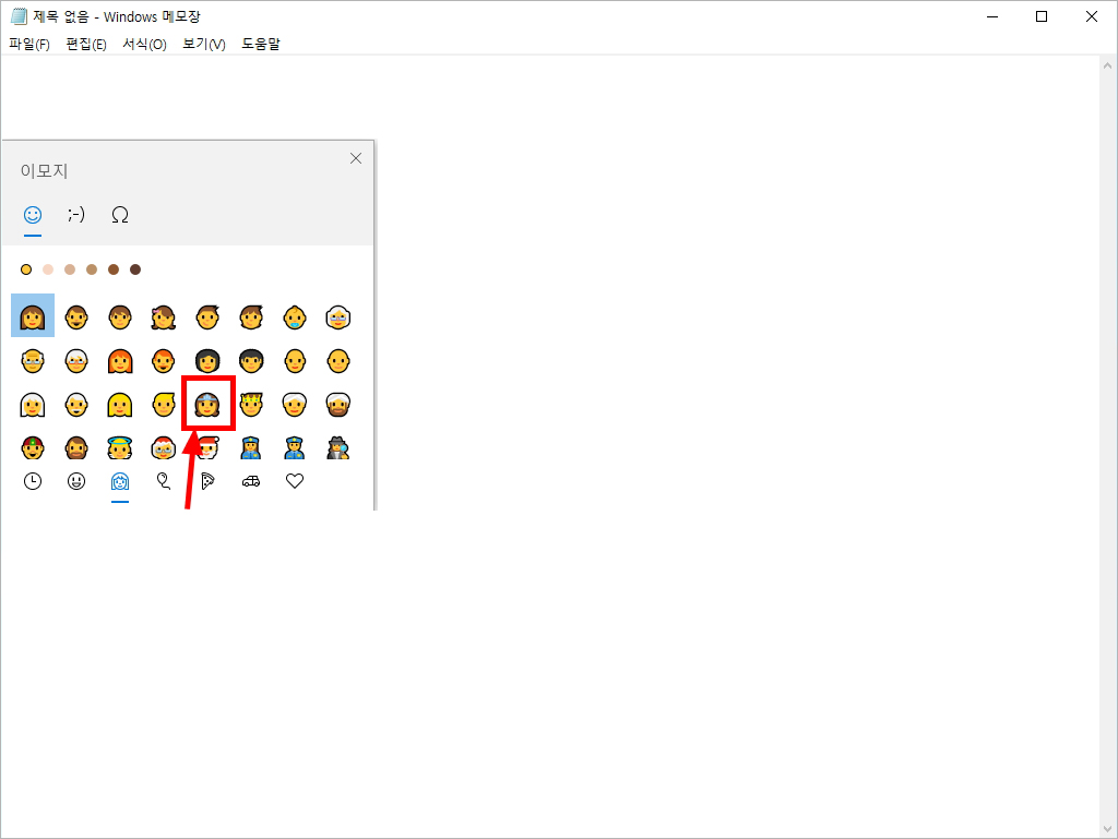 그러면 앞서 선택한 이모지가 메모장에 입력되는데요,