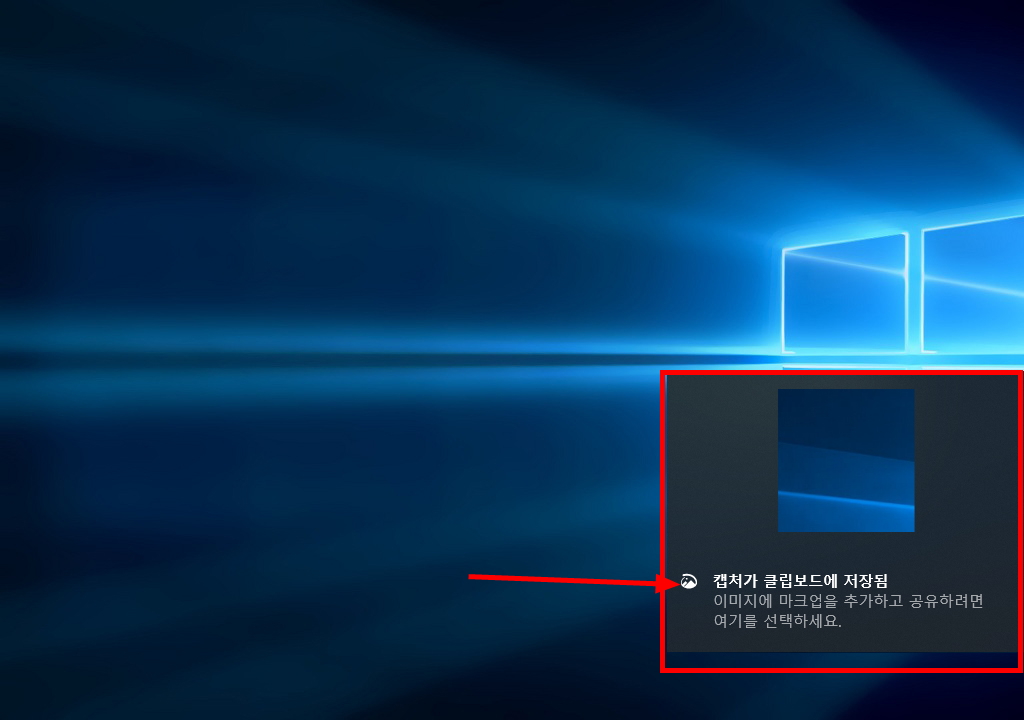 캡처화면 '캡처가 클립보드에 저장됨' 이라고 표시됩니다.