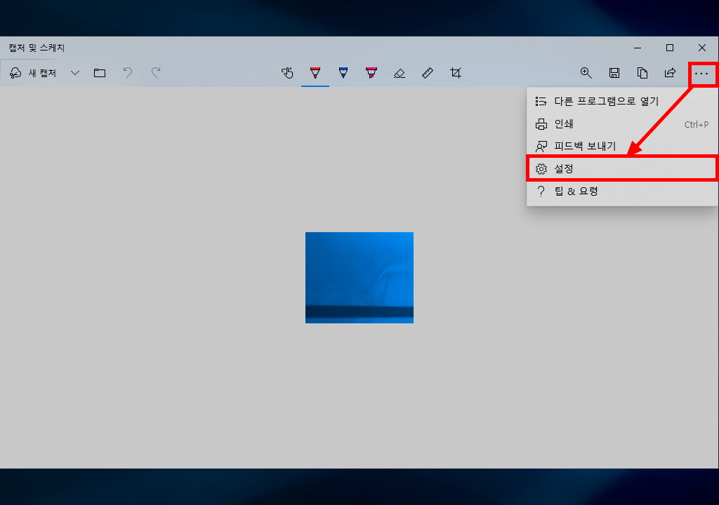[캡처 및 스케치] 창에서 [더보기...] 클릭, [설정]을 클릭합니다.