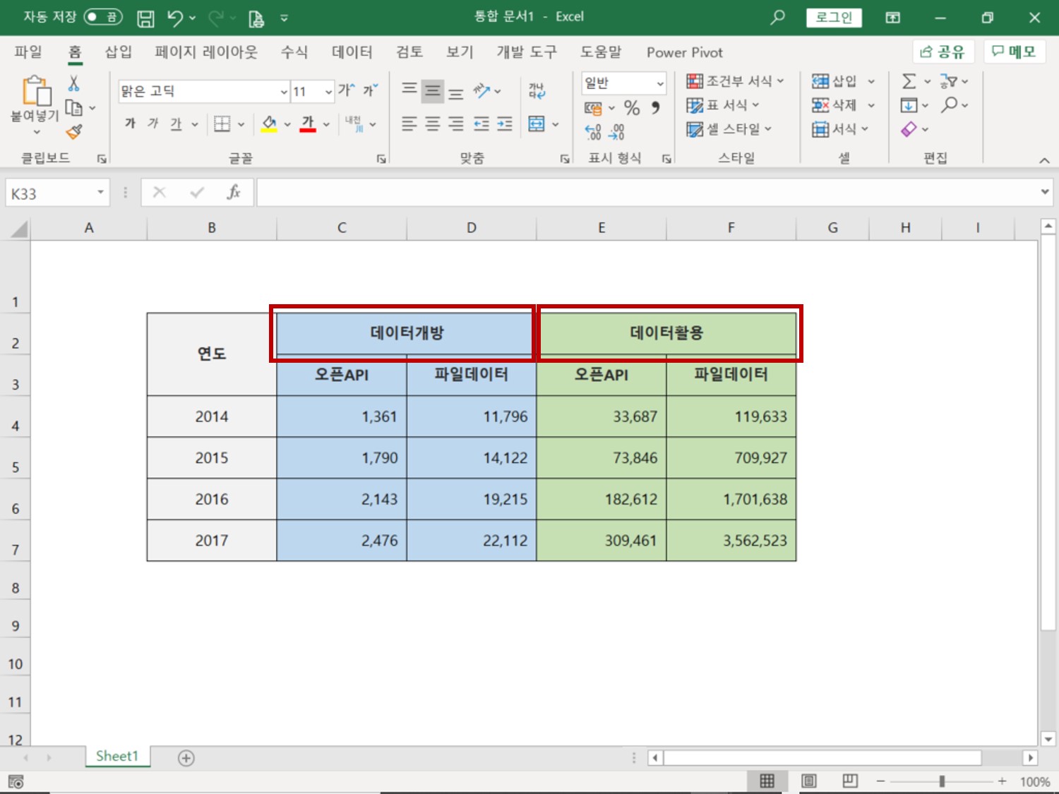 하지만 병합된 셀의 데이터는 종종 편집하기가 불편한 경우가 있습니다.