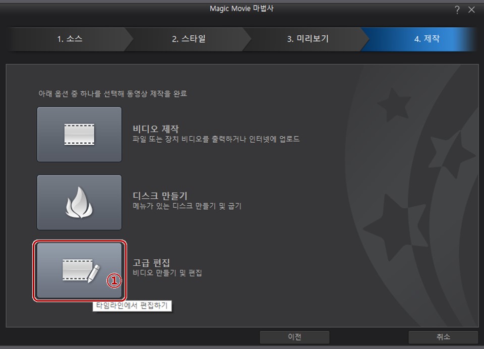 6. [고급 편집]을 눌러 파워디렉터 화면으로 돌아옵니다.