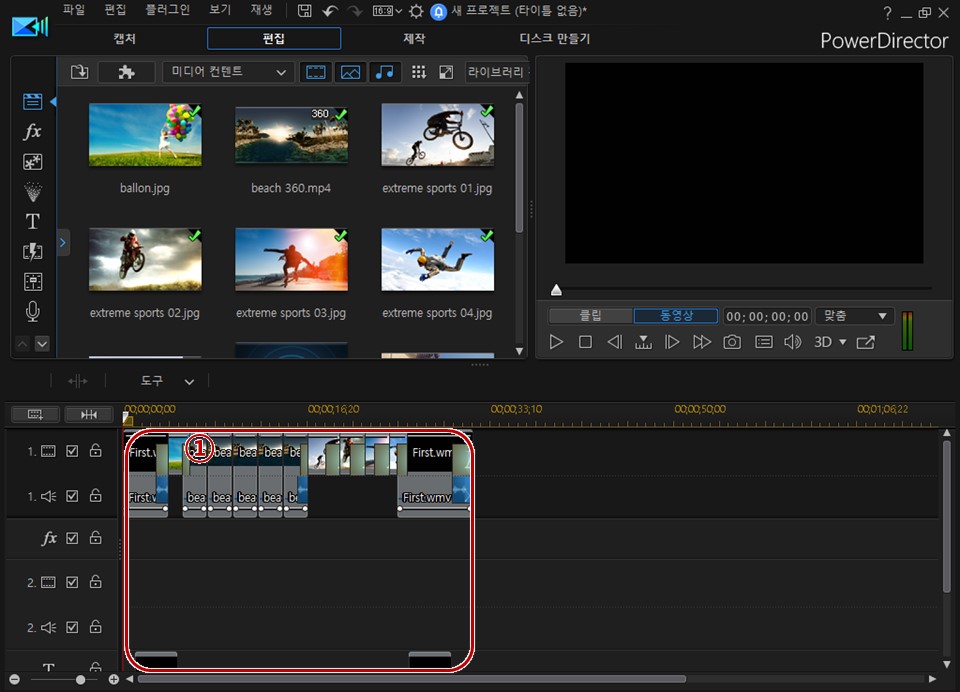 처음으로 파워디렉터를 사용할 때 편하게 동영상을 편집할 수 있도록 매직 무비 마법사를 제공합니다.