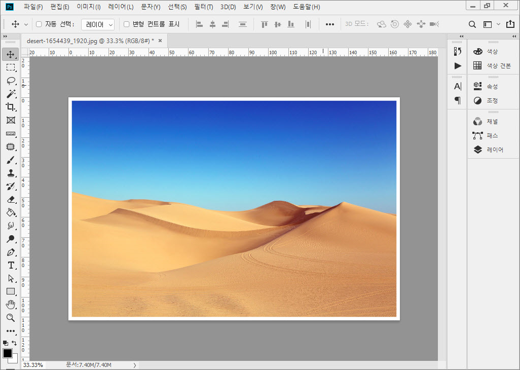 1. 포토샵에서 파일을 열고 [이미지]-[캔버스 크기]를 선택합니다.