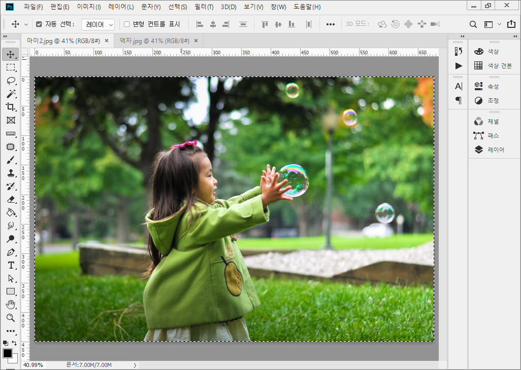 1. 포토샵에서 합성할 사진을 열고 <Ctrl>+<A>를 눌러 모두 선택한 후 <Ctrl>+<C>를 눌러 복사합니다.