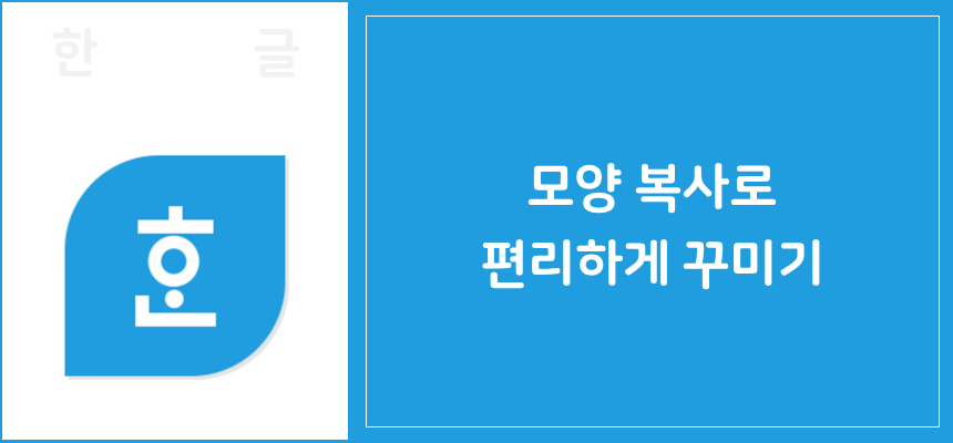 모양 복사는 설정해 놓은 글자 모양과 문단 모양을 다른 문단에 간편하게 복사하는 기능입니다. 특정한 모양을 반복적으로 설정할 때 매우 편하게 쓸 수 있습니다.