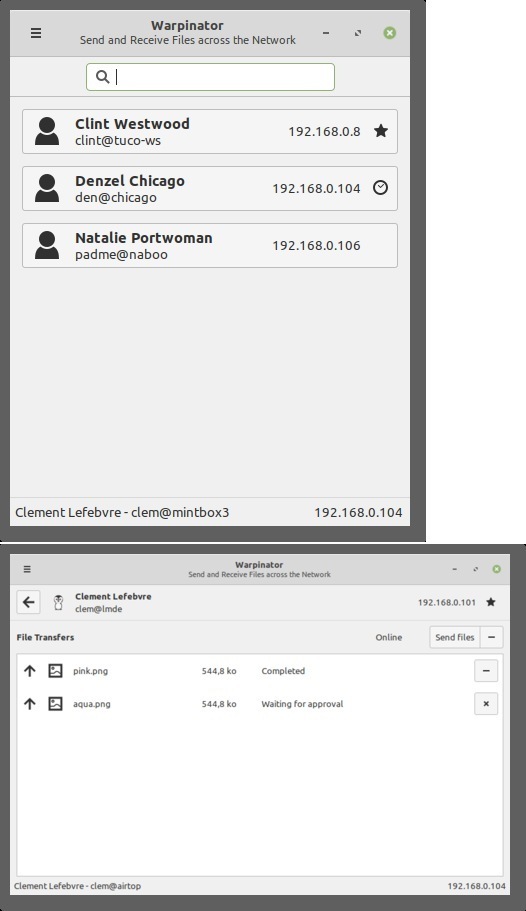 - Warpinator : 서버 설정 없이 같은 LAN상에 있는 컴퓨터간 파일을 공유 지원