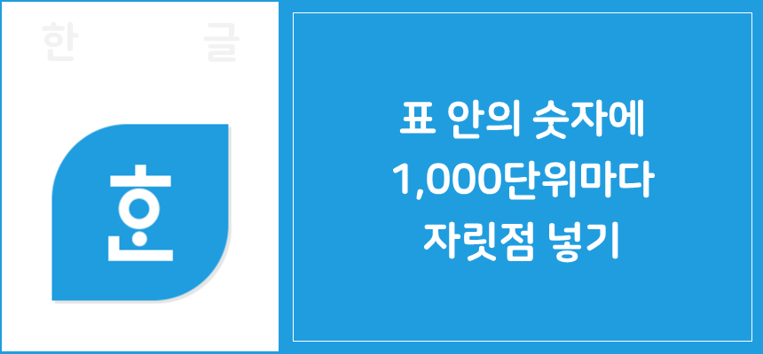 표 안의 숫자를 감지하여 일괄적으로 1,000단위마다 자릿점을 넣을 때 사용합니다.