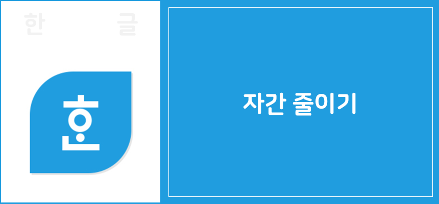 어절이나 단어가 나뉜 부분을 한 줄에 표시하기 위해서 자간을 조절합니다. 자간 조절 기능은 글자 모양에 해당하는 부분으로 [모양]-[글자 모양] 메뉴를 사용하여 설정할 수 있지만, 결과를 보면서 조절하는 것이 편리하므로 단축키를 사용하는 것이 편리합니다.